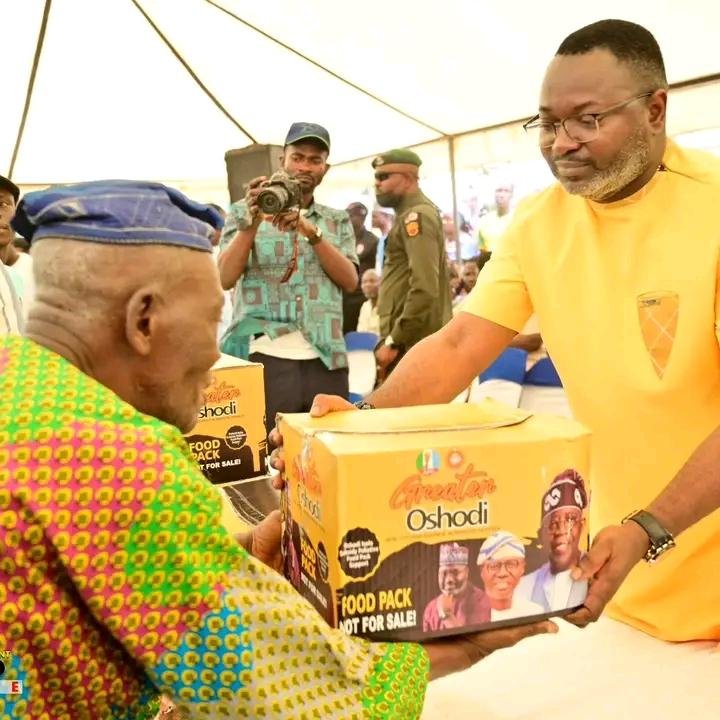 In a bid to lessen untoward hardship greeted by removal of fuel subsidy in the country on his people, the Chairman of Oshodi/Isolo Local Government Area, Otunba Kehinde Almaroof Oloyede, on Wednesday 23rd of August, 2023 distributed packs of food items to 10,000 beneficiaries.