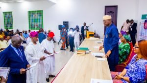 The Governor also inaugurated two commissioners- Prof Bolaji Aluko and Rt. Hon Karounwi Oladapo restated his administration’s commitment to the welfare of workers in the state.