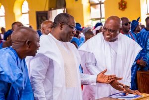 Ekiti State Governor, Mr Biodun Oyebanji and the immediate past Governor of the State, Dr Kayode Fayemi on Friday led other dignitaries to pay last respect at the burial ceremony of former Chairman of Ekiti State All Progressive Congress Elders’ Forum, Chief George Akosile.