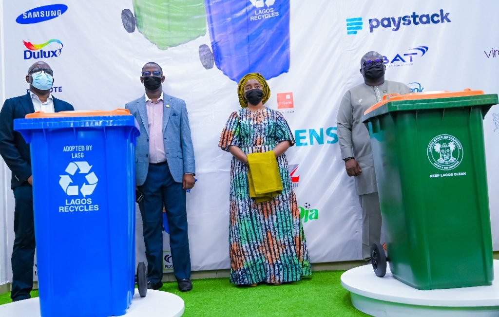 The bins which came in green and blue colours, are for LAWMA’s strategic recycling campaign for residents to containerize their waste.