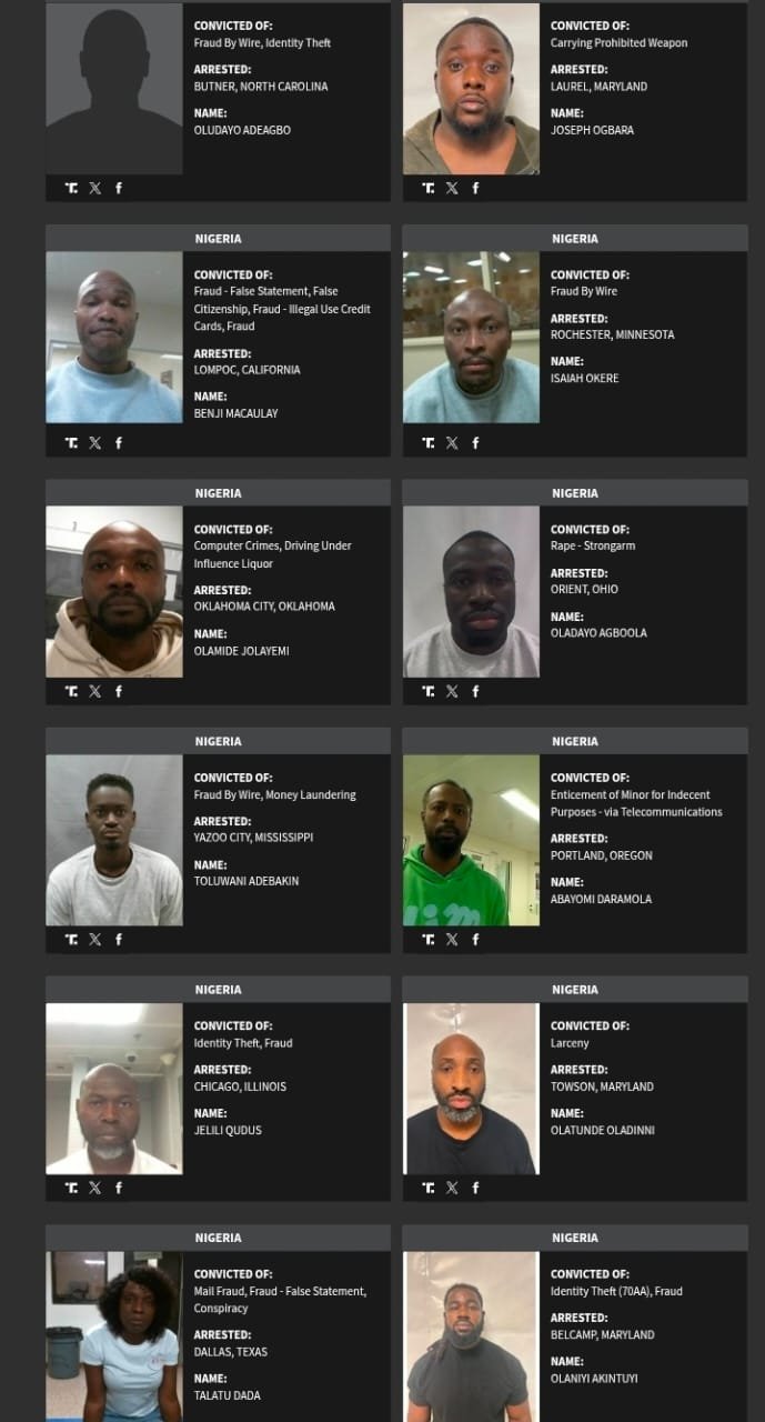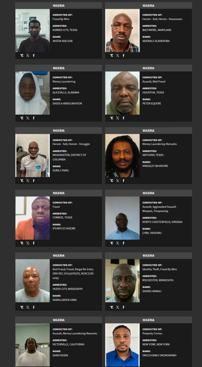 See faces, names and crimes of the convicted Nigerians below.