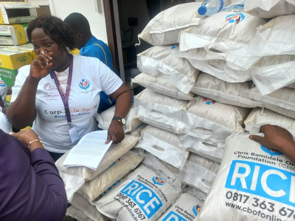 RevolutionPlus Property firm through Chris Bamidele Onalaja Foundation(CBOF), this afternoon in their Ikeja Head Office, celebrate with over 200 widows, as every one of them went home with a bag of rice and a big vegetable oil each.