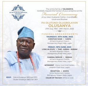 This is the sad news of the passing away to greater glory of Pa Olutunji Olugbolayan Olusanya, the father of Mrs Tolulope Onalaja the wife of Revolutionplus Properties GMD.