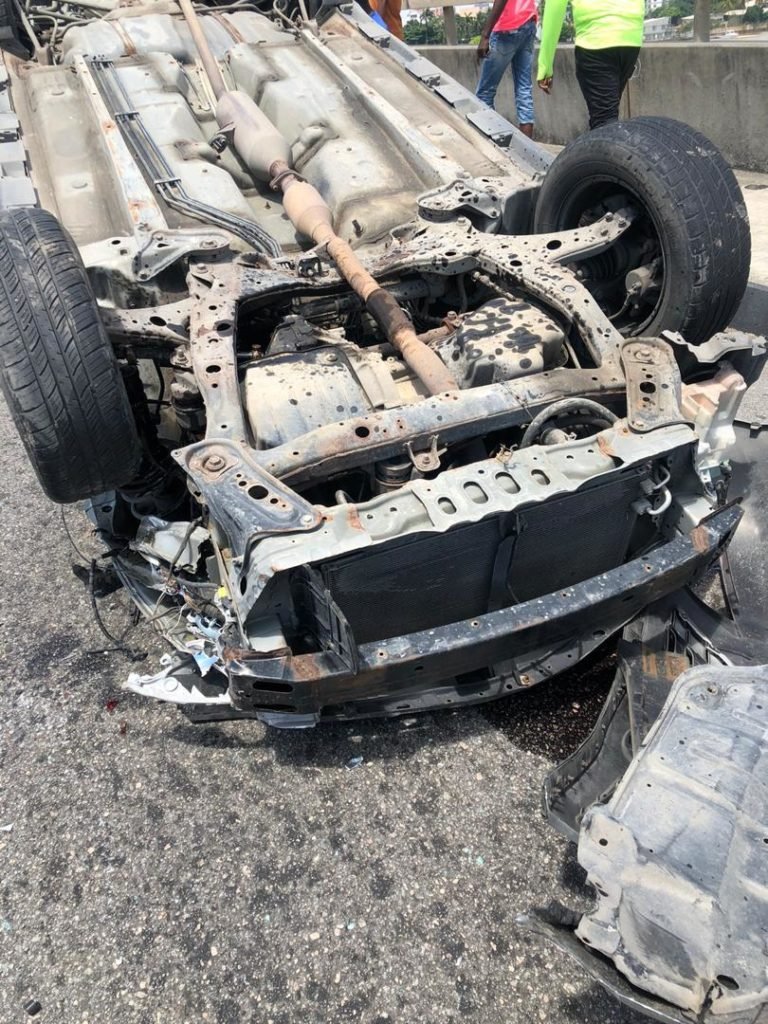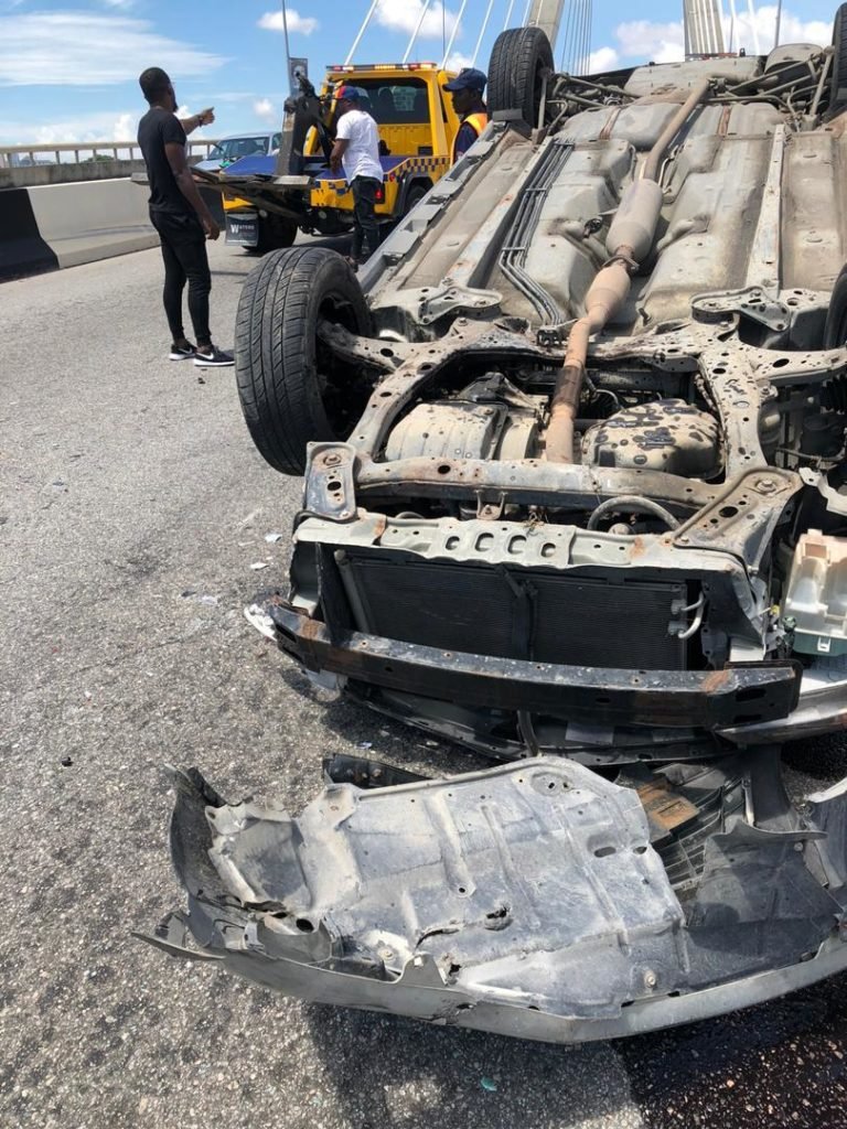 The agency responded to an incident involving a Toyota Camry vehicle with registration number AAA 708 GC which was found upside down as a result of running into a stationary car which had broken down on the bridge