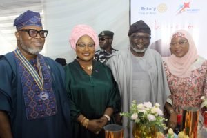 Traditionally, at events such as this, the Rotary likes to honour and celebrate a few people, non Rotarians, who have been very supportive to their cause. This time, the Rotary Club of Ikoyi decorated as Honourary members of the Rotary Club of Ikoyi, Her Excellency, Alhaja Kafayat Oyetola, the former First Lady of Osun State and wife of the current Minister of Marine and Blue Economy, Mr. Gboyega Oyetola, Assistant Inspector General of Police, Adio Durosinmi, Otunba Bimbo Ashiru and Otunba Oluwatoyin Akomolafe.