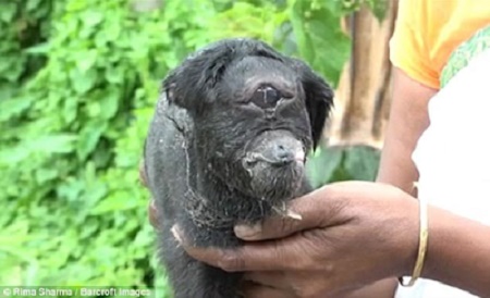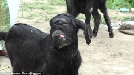 This leads to the formation of a single central cavity with one eye, or sometimes partially fused or separate eyeballs. Other animals including horses, pigs, cows and cats have been known to suffer from the condition.