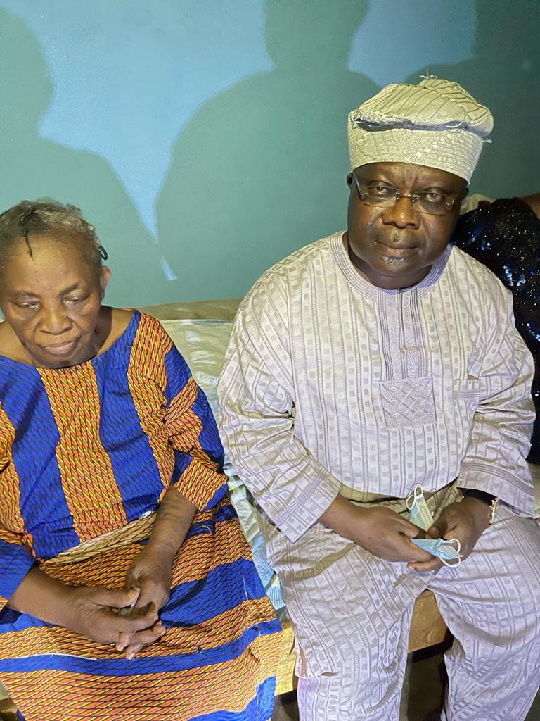 Senator Iyiola Omisore paid a condolence visit to the aged parents of late Comrade Yinka Odumakin, Pa Ezekiel Odumakin and Mama Alice Odumakin, on Tuesday, April 6th,2021 at Moro, in Ife North Local Government, Osun State to commiserate with them on the demise of their son.