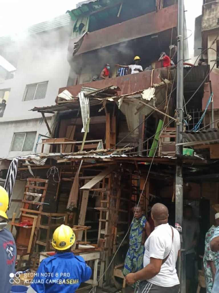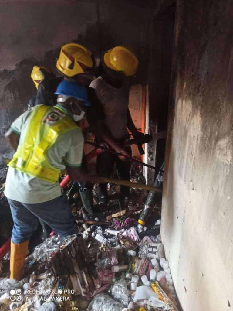 On arrival at the scene it was discovered that a double shop on the second floor of a three storey building was gutted with fire. The fire was contained and has been successfully put out by the agency’s LRT , LASG fire , CBD and Federal Fire Service.