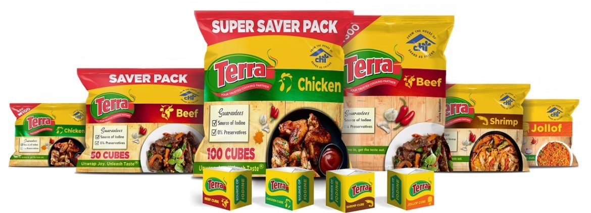 Terra Seasoning Cubes are made up of wholesome, carefully sourced essential ingredients specially designed to meet the discerning Nigerian consumers’ needs in every meal, offering great taste, flavour, and aroma for that unique cuisine experience. Every meal cooked with Terra guarantees an enjoyable meal and a rich signature homemade taste experience. Available in Beef, Chicken, and Jollof flavours, in various consumer-friendly pack sizes nationwide.