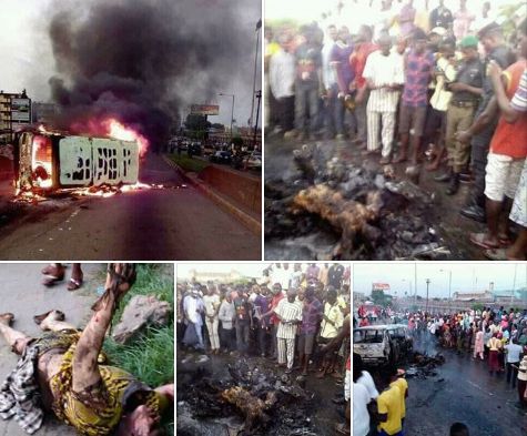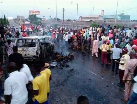 “Fire accident at western avenue surulere national stadium bridge, a bus fully load of 16 passenger only 3 survived. May their souls RIP……”