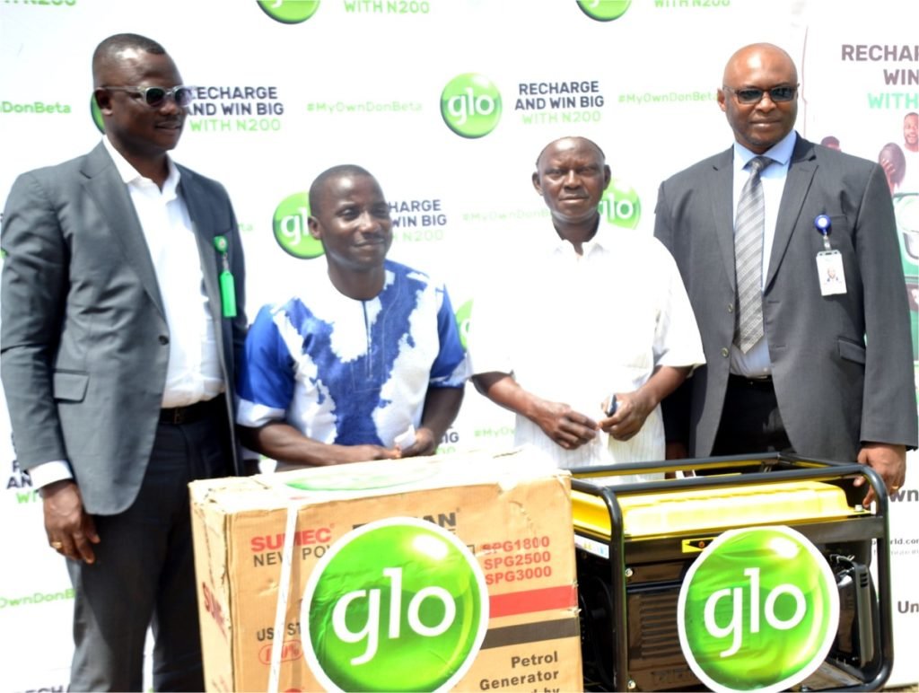 Two police officers, Friday Macvier and Onah Michael, won a generator and a grinding machine respectively at the promo and also took possession of their prizes. Onah, a Police Inspector, said that he would give the grinding machine to his wife and daughter “to put it to use in the market and the proceeds will assist our domestic needs. I advise whosoever is using Glo to also try as they can win something. I never expected to win.”