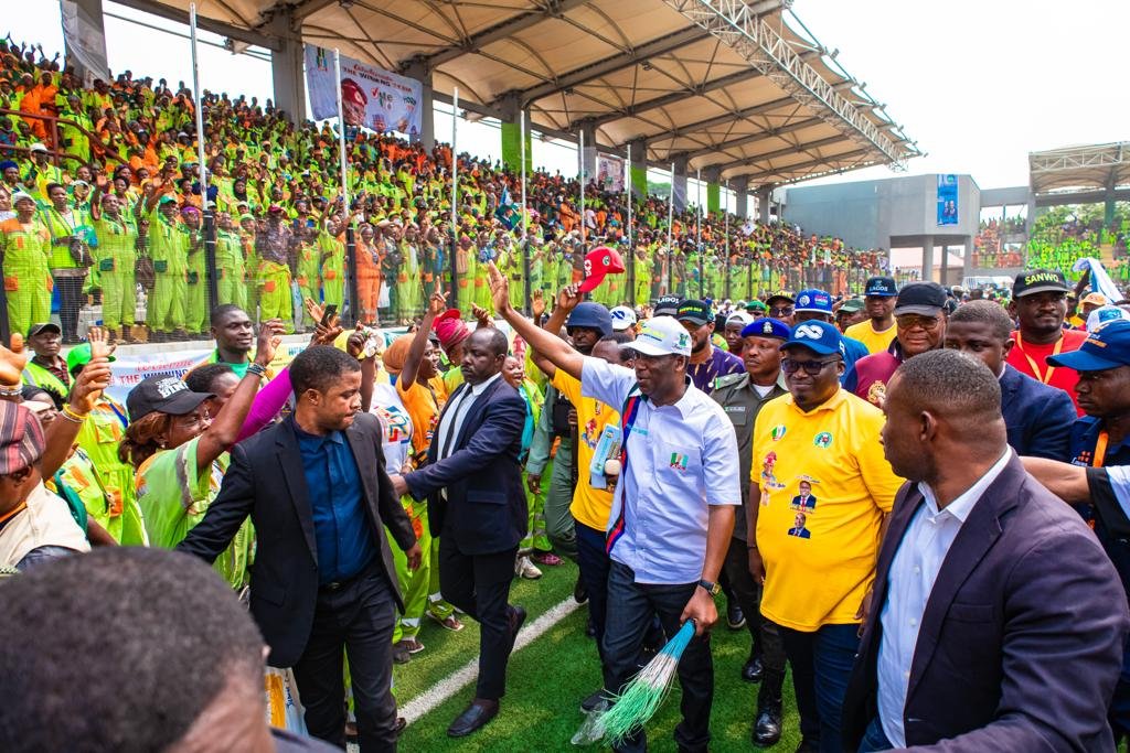 The Waste Managers, under the aegis of the Association of Waste Managers of Nigeria (AWAMN), popularly known as PSPs, at the Mobolaji Johnson Arena, formerly known as Onikan Stadium, vowed to mobilize all its members for a door-to-door campaign for Tinubu and Sanwo-Olu.