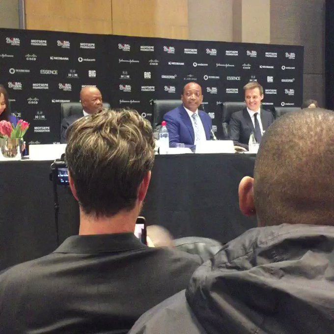 CEO of Global Citizens Hugh Evans, alongside supermodel Naomi Campbell and businessman Patrice Motsepe, on Monday, July 9, announced the lineup for the Global Citizen Festival to celebrate Nelson Mandela’s 100th centenary.