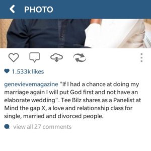 Emotionally embattled TeeBillz has statd that he will put God first and would not have a celebrity wedding if he ever had the chance to do it all over again. He made this touching statement at the recent Mind The Gap X, a programme focused on Love and relationship for married, single and divorced people.