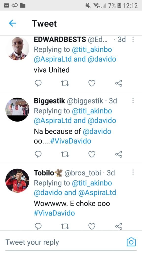 Davido fans continues even on our own Titilope Oshunlalu’s @titi-akinbo Twitter page.