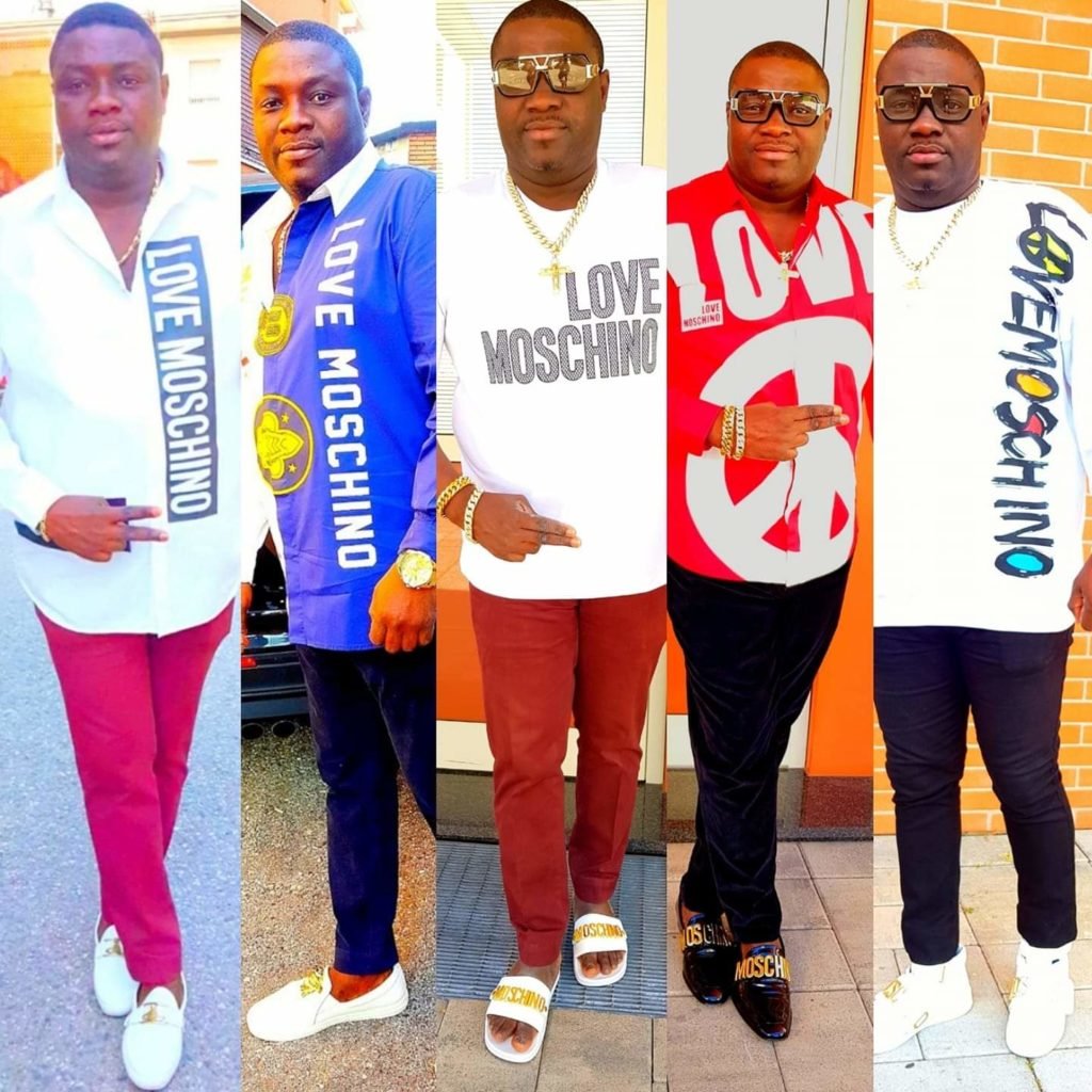 His real name is Prince Ayoola Owolabi Shoremekun. But everybody calls him, Mr. Moschino. This is because this Lagos businessman who does a lot of buying and selling wears only Moschino labels, from head to toe. Infact, anytime you see him, he is always dressed in Moschino outfits. It is either he is dressed in Moschino Shirts, Moschino Tee shirt, Moschino branded shoes, wristwatch, bags and accessories. As a matter of policy, he does not wear any other label. That is why he has been nicknamed Mr. Moschino.