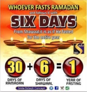 “In Islam, every good deed is multiplied by ten. Fasting for 30 days in Ramadan earns a reward of 300 days. The six days of Shawwal add 60 more days, making a total of 360 days—essentially a full lunar year in Allah’s sight!”