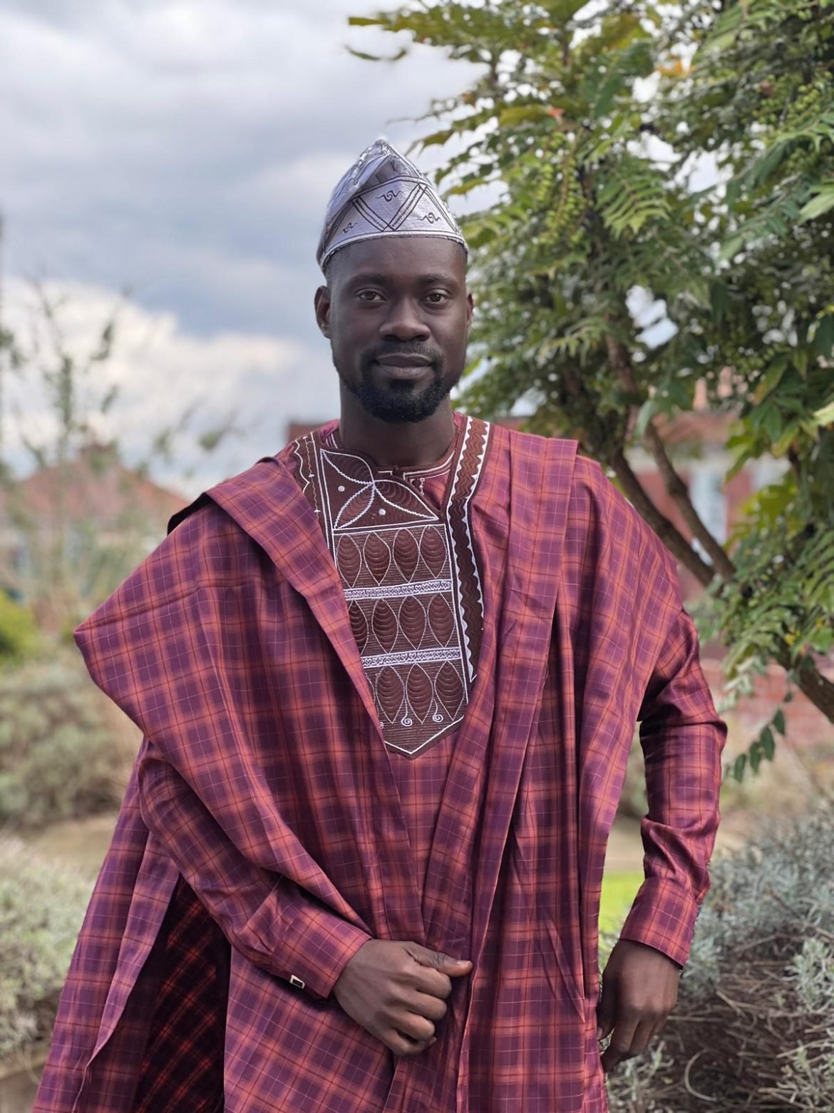 The agbada is a quintessential piece in Nigerian and West African fashion, often reserved for special occasions or ceremonies. Traditionally made with richly textured fabrics like brocade or aso-oke, the agbada is meant to be bold and regal, a visual embodiment of status. In contrast, Egbebi’s use of senator fabric presents an entirely different approach.