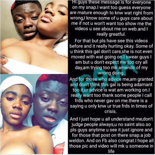 ..But please, I have seen these videos before and its really hurting okay. Some of you think this girl don’t care, se is not even moved with what’s going on. I swear guys I am but you don’t expect me to cry all day, I’m trying to make amends of my wrong doing.