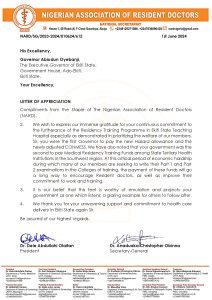 NARD equally noted with gratitude that the government of Biodun Oyebanji was the second to pay the Medical Residency Training Funds among State Tertiary Health Institutions in the Southwest region.